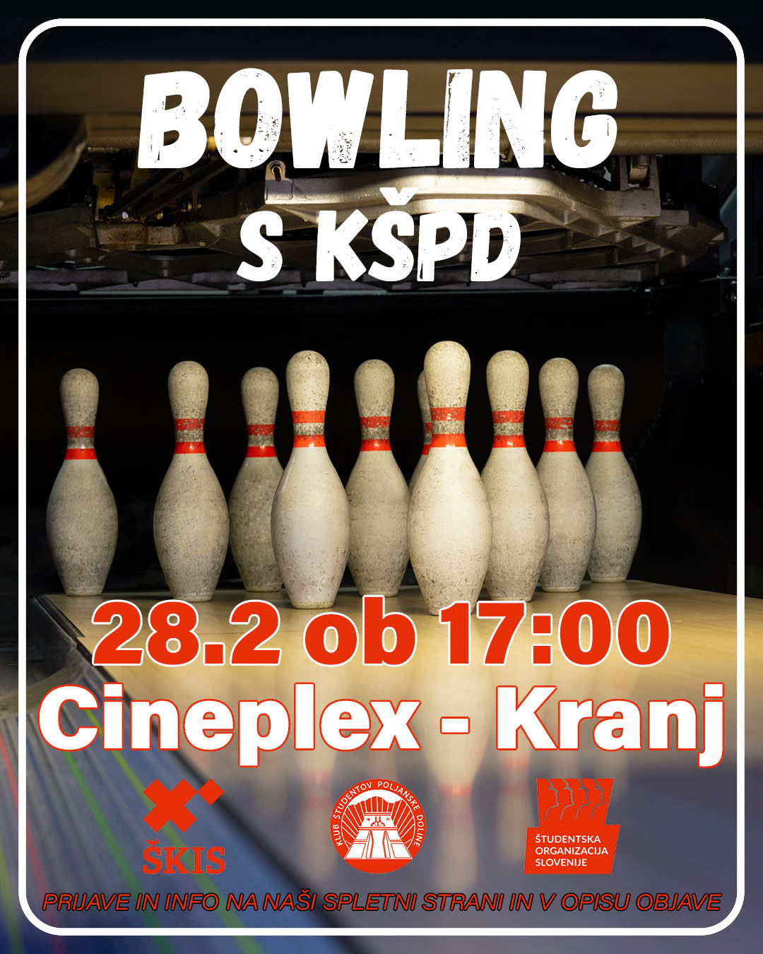 V soboto, 28. 2. 2026, gremo skupaj podirat keglje in se zabavat na bowling v Kranj (Cineplexx). Po igri pa sledi še sproščeno druženje v klubu. Pridi, vzemi dobro voljo in se nam pridruži! 😄